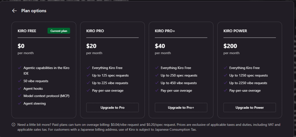 Definitely is the pricing. I used up all my quota which almost equivalent of Kiro Pro ($20) and still not enough to finish the job. It is their benefit to spec out as many task as possible despite the complexity – that’s how they earn their bucks.