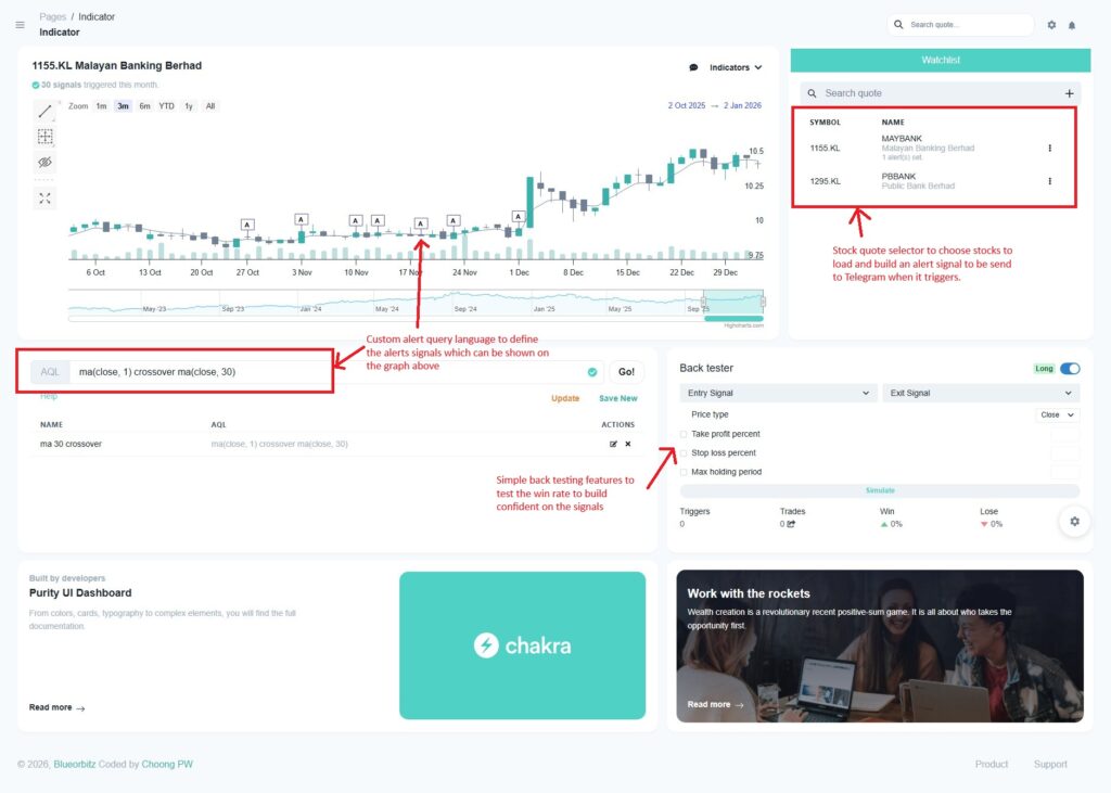 The app is called Owl Alert which was for me to build my own technical alert indicators to get notified when a technical condition is met. Was just me being frugal and don’t want to pay for service like Trading view. Anyway, this app was mean to complement my investment journey and also building some technical product for fun.